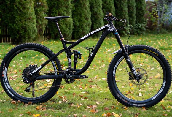 Glenn is riding a carbon Gradient Riser Bar, a custom Team Stem, a Flowtron Dropper Seatpost, carbon SL-K Crank, GRID Chainguide and also carbon Gradient Wheels.